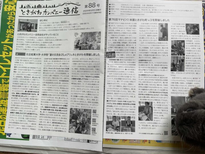 ときがわカンパニー代表の関根です。(一緒に写っているのは、うさぎのミミちゃん) 2025年8月17日(日)「ときがわカンパニー(同)通信」第88号を発行し、ときがわ町と鳩山町の新聞折込チラシとして、約4800部(ときがわ…