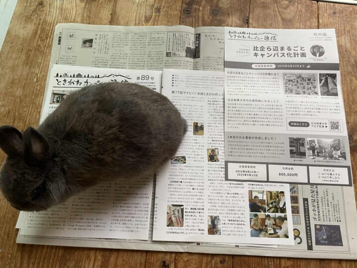 ときがわカンパニー代表の関根です。(一緒に写っているのは、うさぎのミミちゃん) 2025年9月14日(日)「ときがわカンパニー(同)通信」第89号を発行し、ときがわ町と鳩山町の新聞折込チラシとして、約4800部(ときがわ…