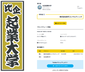・25年8月23日(土)0時~ 比企起業大学「応援団チケット(NFT)」の販売開始(9月23日23時30分終了)
