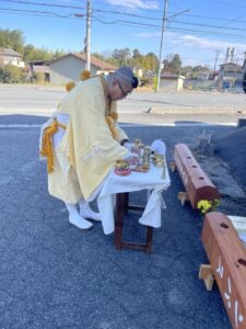 比企ら辺まるごとキャンパス化計画2026年3月2日まるキャン「2本目丸太看板」のご祈祷をして頂きました。