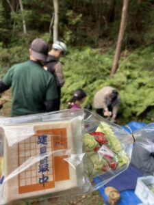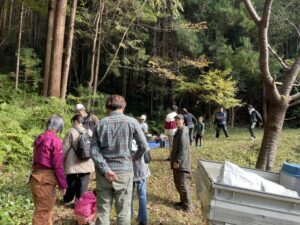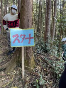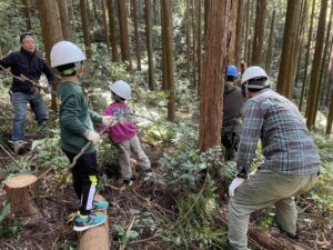 皆で、作業しやすいよう、これから伐る木の周辺を片付け。