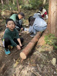 その間、子ども達は、小さい丸太を切って