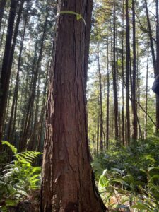 このヒノキを、いよいよ切り倒します。