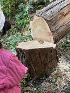 まるキャン看板二基目用の桧を伐採しました。建築では使えない材も良材として活かそう! – 山なお
