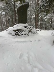 富士塚で、お参りしている人もいました。雪に残る足跡、面白いですね。