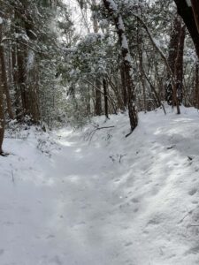 普段は、左側の道を登る所、うっかり右側の道へ。奥さんに言われなければ、そのまま進んでました。雪山は、怖いですね。
